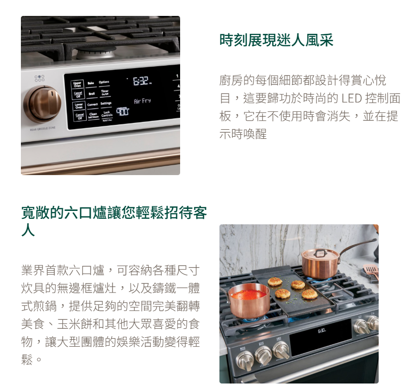 GE奇異 CHS950P2MS1 Café™30吋電能型五口雙層爐連烤 IH爐