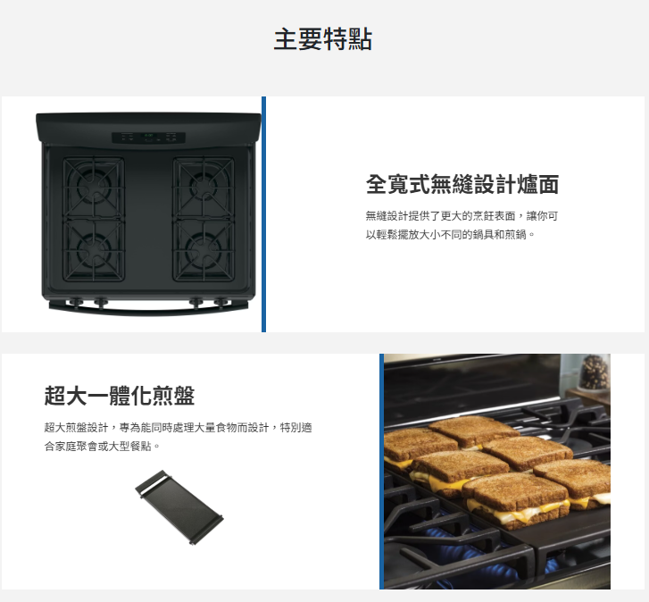 GE奇異 JGBS66DEKBB 30吋瓦斯型四口單層爐連烤