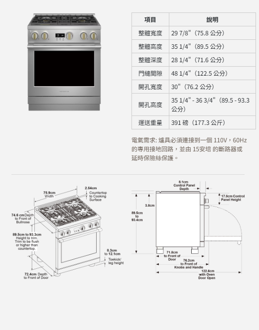 GE奇異 CJGBS60DEKBB 30吋瓦斯型四口單層爐連烤