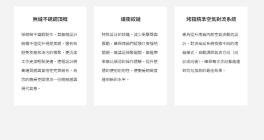 • 精確循環烤箱系統,依據不同烘烤模式切換運轉,以達到最佳烘烤效果