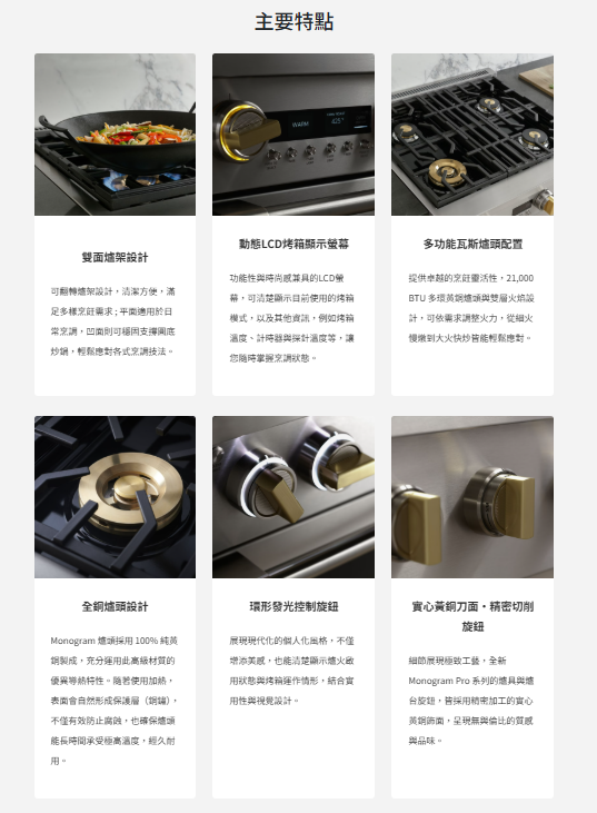 GE奇異 ZGP364NDTSS Monogram® 36吋瓦斯型四口單層爐連烤