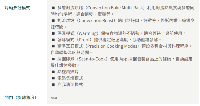 • 精確循環烤箱系統,依據不同烘烤模式切換運轉,以達到最佳烘烤效果