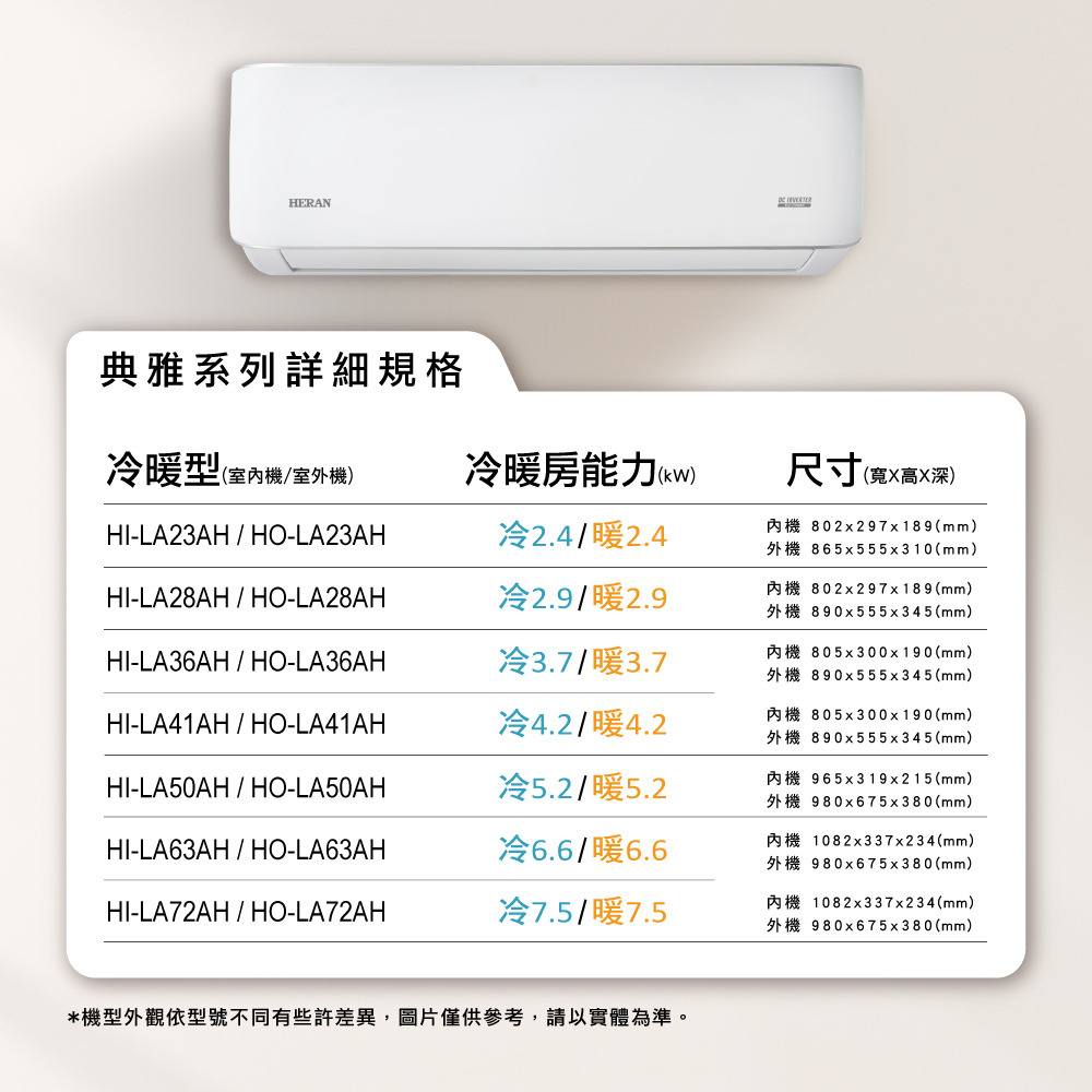 禾聯HERAN HI-LA50AH_HO-LA50AH 變頻冷暖分離式冷氣