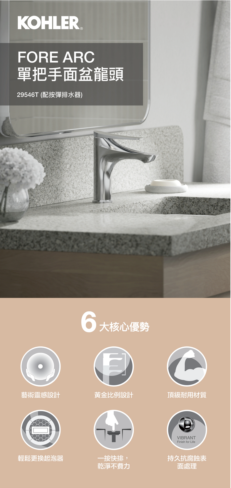 科勒KOHLER Fore Arc K-29546T-4-BN 臉盆龍頭 羅曼銀
