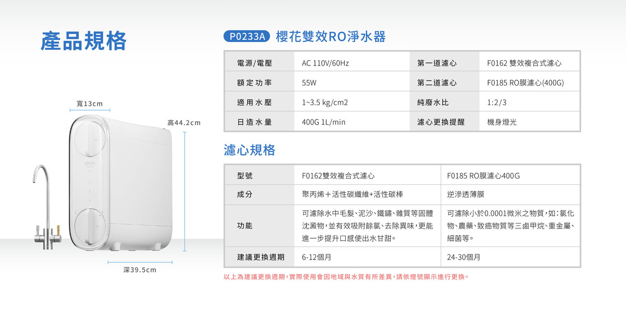 | *註1:本產品除串接櫻花熱飲機之外,其他產品(例如:冰箱)皆須加裝穩壓器(C95-A463小儲水桶)使用。 *註2:本產品如要串接熱飲機,建議串接櫻花牌產品,同時留意串接距離長度,勿過長以確保使用效果。 如串接其他廠牌設備,須依實際情況與環境條件確認,無法保證與本產品搭配之適用性。 |